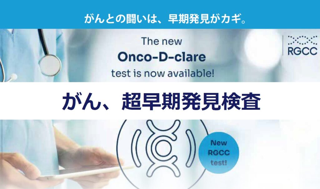 当院では、RGCC社の提供するオンコ-D-クレア検査(Onco-D-Clare)を導入し、がんの超早期発見への取り組みを行っています。