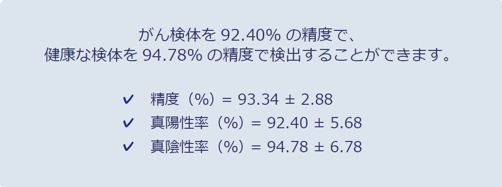 - 健常者とがん患者の遺伝子発現データをビッグデータと機械学習のアルゴリズムを用いて解析し、PCRやRNAシークエンシングなどの